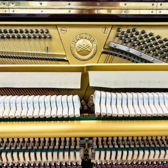 - Hệ thống thoát âm (Tone Escape) ở mặt trước: Yamaha đã khéo léo thiết kế các khe thoát âm ẩn ở mặt trước đàn (thường là phía sau giá để bản nhạc). Âm thanh thay vì bị kẹt trong thùng gỗ sẽ đi xuyên qua các khe này, dội thẳng vào người chơi, mang lại cảm giác âm thanh nổi (stereo) sống động, chi tiết và chân thực nhất.